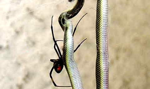 Xem nhện lưng đỏ hạ gục rắn nâu