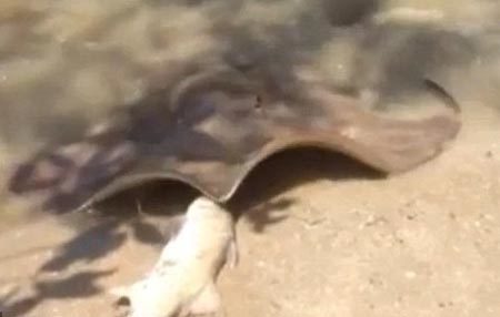 Cá đuối gai độc mò lên bờ trộm cá của người