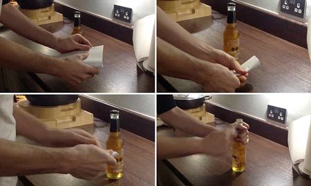 Không cần cái mở nắp chai chuyên dụng, bạn hoàn toàn có thể khui nắp một chai bia dễ dàng chỉ bằng một tờ giấy A4.