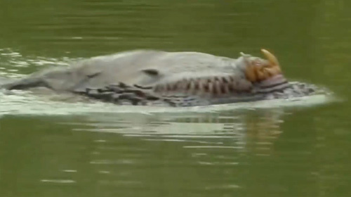 Xôn xao clip "quái thú" kỳ dị bơi trên sông