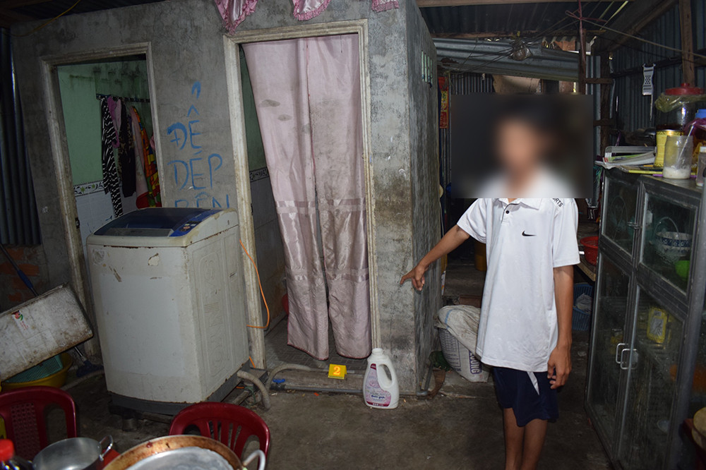 Đến khoảng đầu tháng 7, do T. không nghe lời nên Hòa tiếp tục kêu T. vào trong bếp, dùng bật lửa đốt vùng kín của em. Do lo sợ nên T. không chia sẻ với người thân.