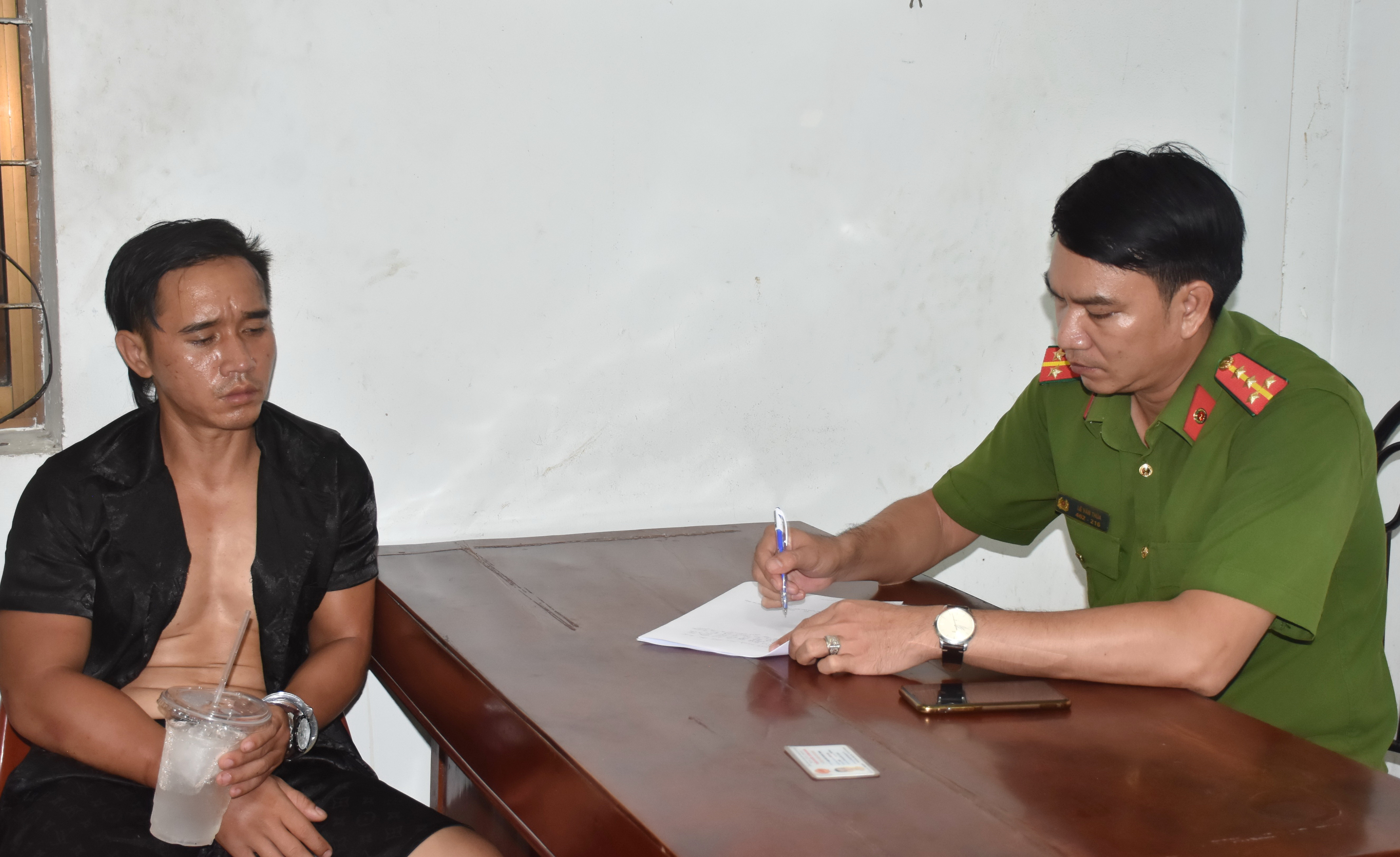 Lúc này, Đại úy Huỳnh Tấn Khanh đang đến Công an phường 1 liên hệ công tác, liền hỗ trợ 2 cán bộ Công an phường truy bắt Thịnh.