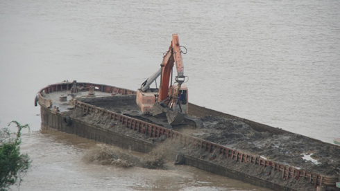 Thông tin "tàu lạ" mang số hiệu P.T0677 vận chuyển khối lượn lớn chất lạ di chuyển từ khu vực gần cảng Hà Nội ra sát chân cầu Thanh Trì (quận Hoàng Mai) đổ bỏ xuống lòng sông vào ngày 14/11.