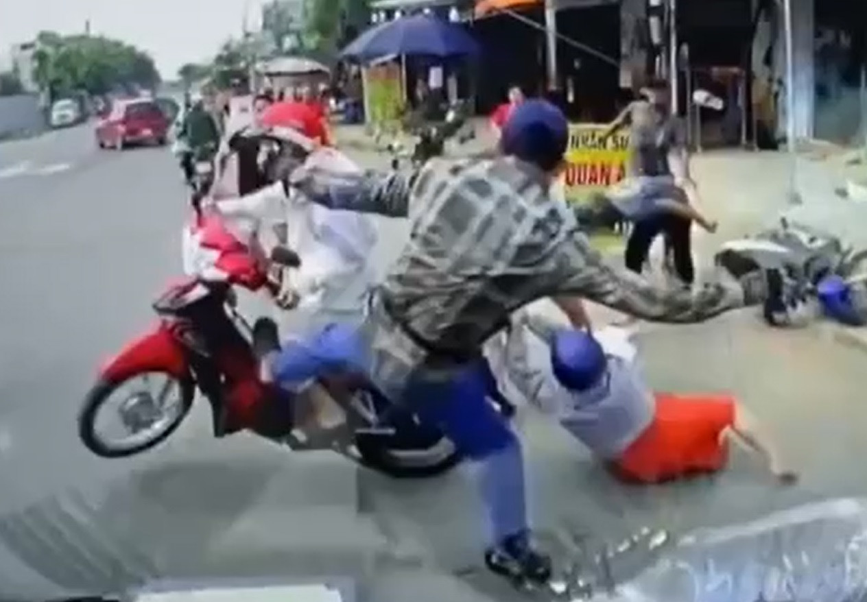 Nghe tiếng tri hô, người dân xung quanh đã chạy tới hỗ trợ. Thời điểm này một thanh niên đã lao tới dùng chân đạp trúng đối tượng làm cả người và xe ngã xuống đất. Tiếp đó người dân đã chạy tới vây bắt đối tượng, đồng thời trình báo cơ quan công an.