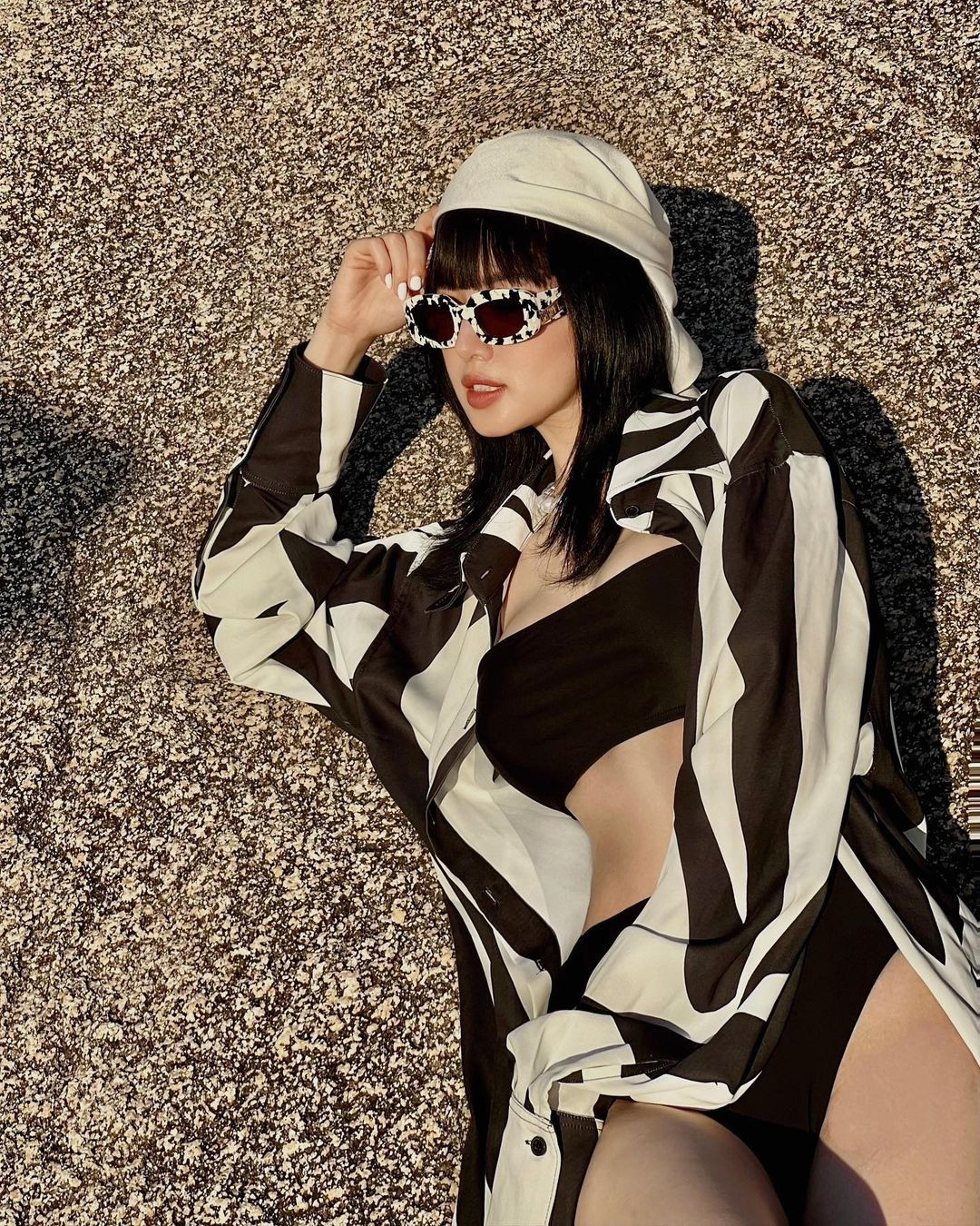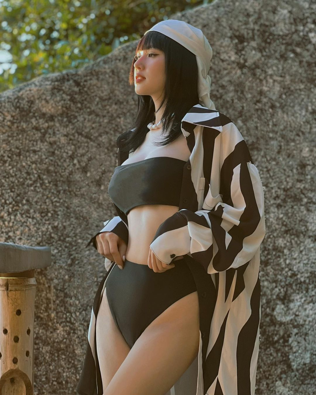 Một phong cách khác khi chụp với bikini của Tâm Tít. Cô được khen ngợi ngày càng trẻ ra sau khi lấy chồng, sinh con. Về gu thời trang, Tâm Tít cũng được khen sành điệu hơn trước.