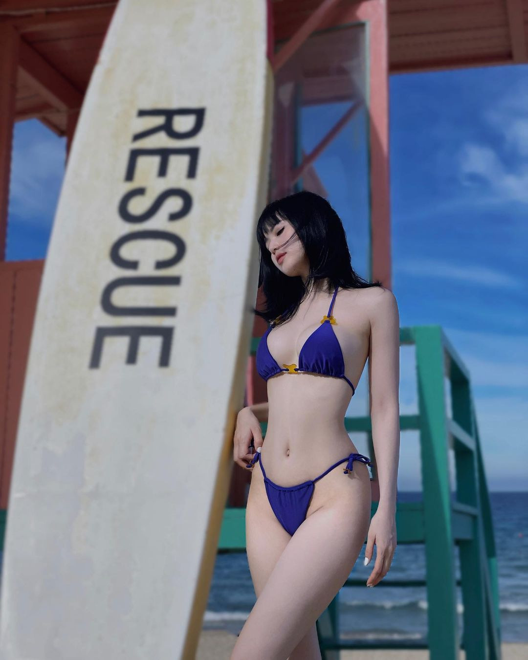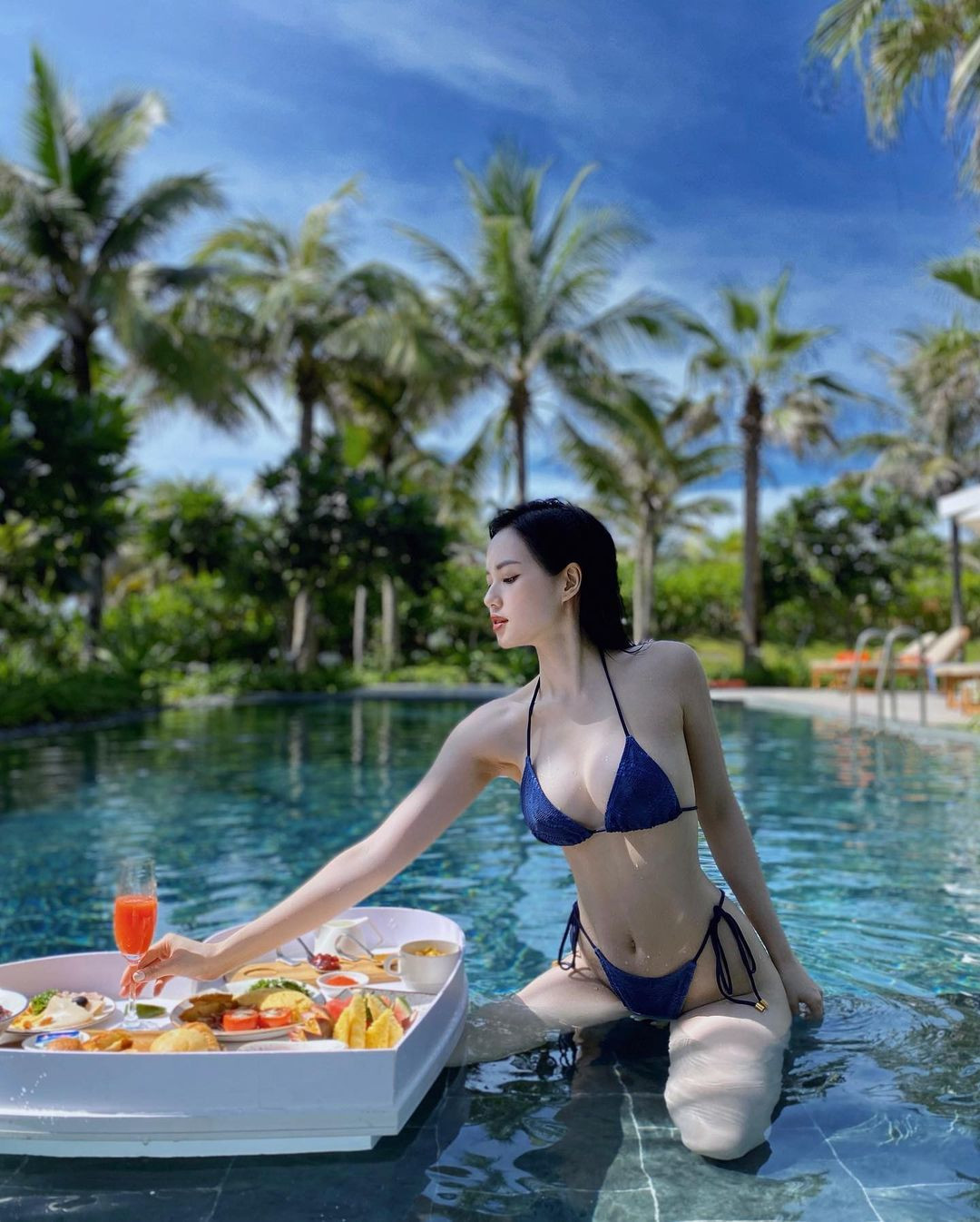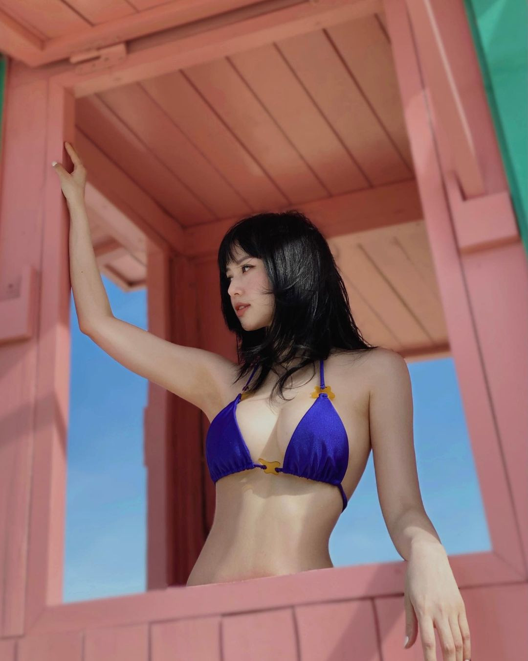 Sử hữu làn da trắng sáng, Tâm Tít luôn biết chọn những bộ bikini màu sắc càng tôn lên điều đó.