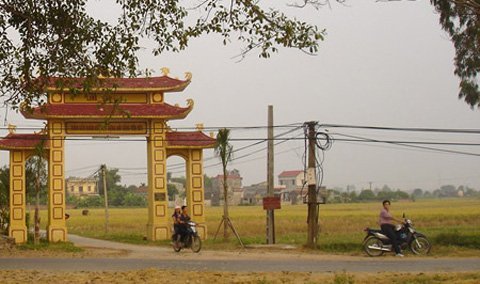 | Cổng làng Vối (tên khác là làng Cẩm Xá) và con đường dẫn vào làng Ngụ |
