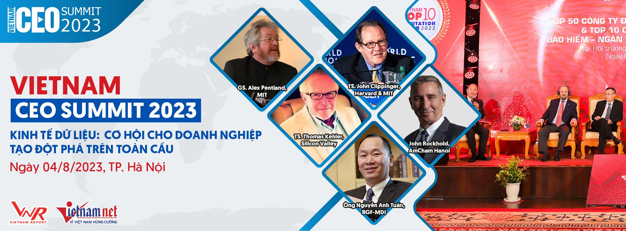 Những vấn đề trên sẽ được thảo luận tại Hội nghị Vietnam CEO Summit 2023 - “Kinh tế dữ liệu: Cơ hội cho doanh nghiệp tạo đột phá trên toàn cầu” do Vietnam Report và Báo VietNamNet tổ chức vào ngày 4/8/2023 tại Hà Nội. Hội nghị nhằm chia sẻ kinh nghiệm, tầm nhìn chiến lược của các chuyên gia kinh tế hàng đầu thế giới và lãnh đạo doanh nghiệp về những xu hướng công nghệ tạo đột phá tăng trưởng, đồng thời đánh giá hiện trạng, thách thức và cơ hội liên quan đến nền kinh tế dữ liệu.