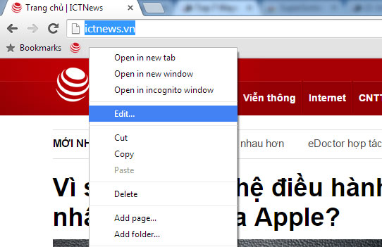 2. Thêm một trang web vào thanh Bookmark