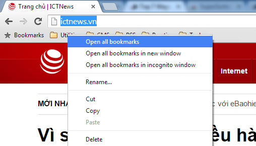 Mặc định khi bạn click vào một trang web được lưu trên thanh bookmark, nó sẽ mở ra ở trang web hiện tại. Nếu muốn mở nó trong tab mới, bạn hãy nhấn giữ phím Ctrl khi click vào trang web đó.