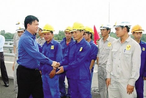 Bộ trưởng Đinh La Thăng gặp gỡ công nhân trên các công trường trọng điểm