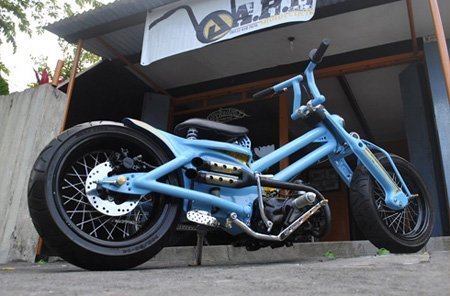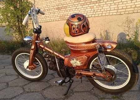 Bộ khung của Honda Cub và động cơ Honda C200 cùng nhiều chi tiết tự chế. |