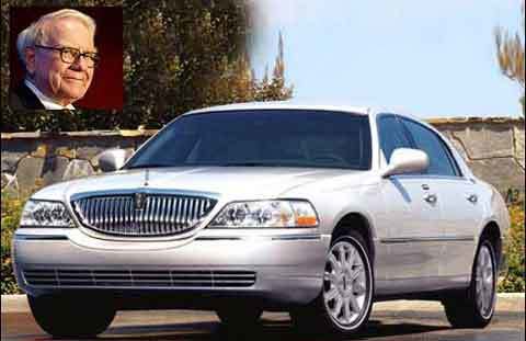 Warren Buffett là người giàu thứ 3 thế giới nhưng ông vẫn ủng hộ cách sống tiết kiệm. Buffet chỉ có một chiếc 2001 Lincoln Town. Trên thực tế, năm 2007, Buffet đã bán chiếc xe này quan eBay với giá 73.200 USD. Buffet được lời 11.000 USD từ việc bán xe nhưng sau đó ông đã góp tiền cho từ thiện.
