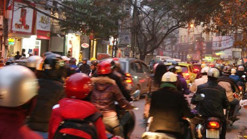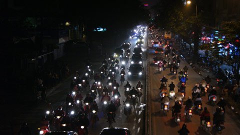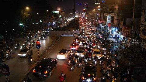 Trên đường Đê La Thành, tình trạng ùn tắc cục bộ cũng xảy ra từ 17h40, khi lượng người và phương tiện càng ngày càng đông dần, nhất là tại các nút ngã tư Láng Hạ - Đê La Thành, Nguyễn Chí Thanh – Đê La Thành.