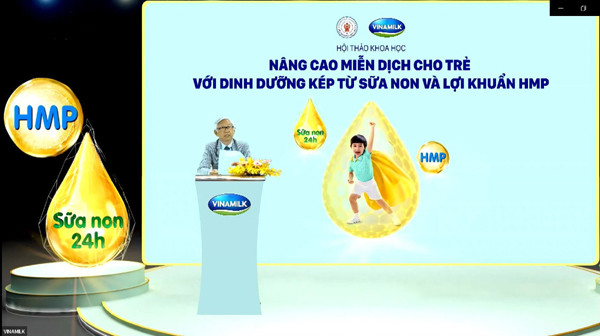 Báo cáo tại hội thảo, PGS.TS.BS Nguyễn Anh Tuấn - Phó trưởng Bộ môn Nhi Đại học Y Dược TP.HCM, Trưởng khoa Nội Tổng quát 2 Bệnh viện Nhi Đồng 1 trình bày đầy đủ các chứng cứ lâm sàng về lợi ích của sữa non và lợi khuẩn HMP được phân lập từ sữa mẹ giúp lấp đầy “khoảng trống miễn dịch” cho trẻ trong mùa dịch.
