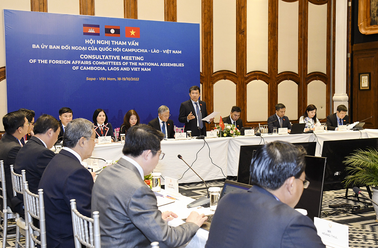 Quốc hội Việt Nam đánh giá cao và hoàn toàn nhất trí với chủ đề Hội nghị “Tăng cường vai trò của nghị viện trong việc thúc đẩy hợp tác toàn diện giữa Campuchia, Lào và Việt Nam” và ba chủ đề thảo luận trong các lĩnh vực Đối ngoại, Kinh tế-Văn hoá-Xã hội, Quốc phòng và An ninh.