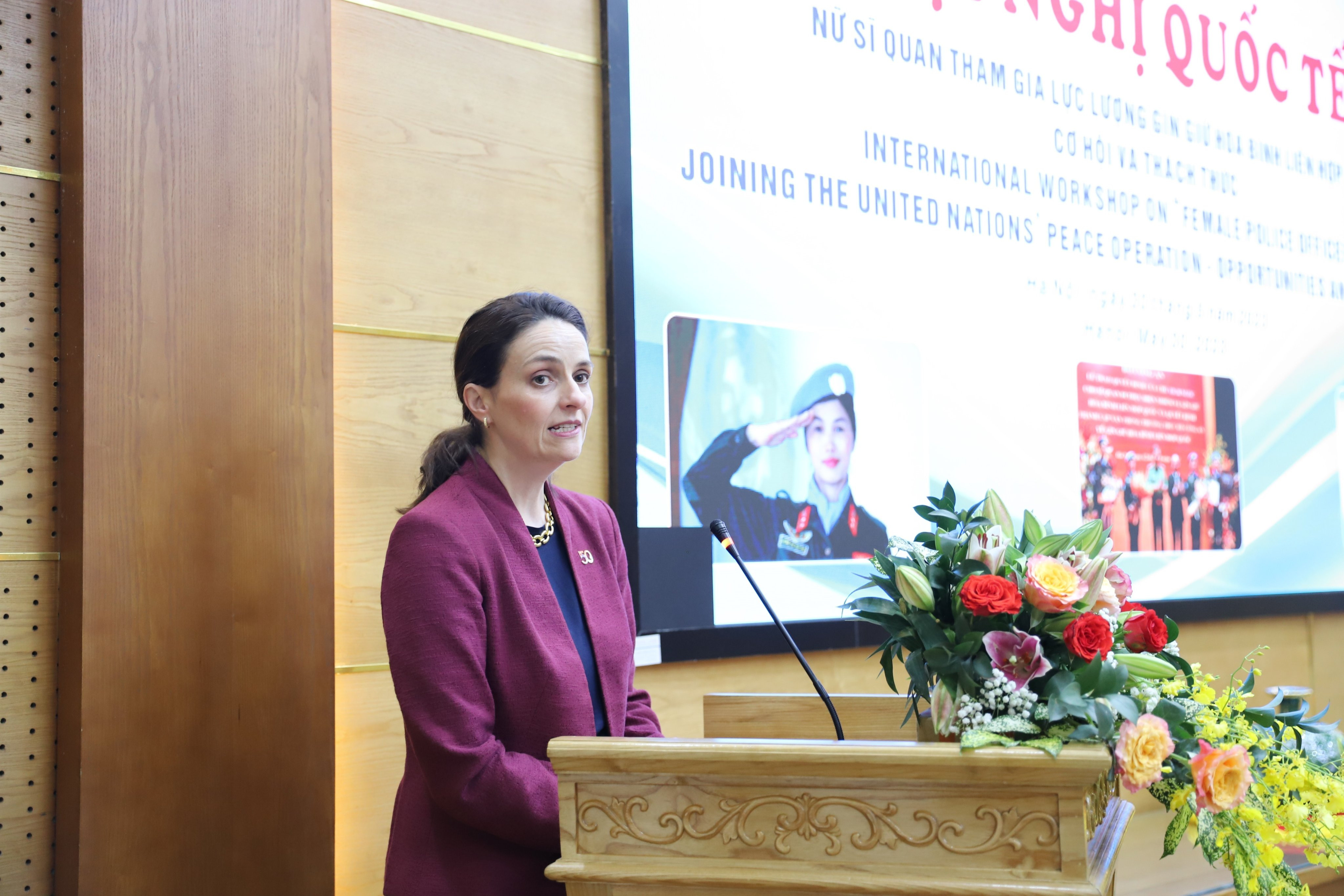 "Chúng tôi rất vui mừng được hợp tác với Học viện An ninh Nhân dân Việt Nam tổ chức hội thảo quốc tế này," bà Caroline Nyamayemobe, quyền Trưởng Đại diện UN Women nhấn mạnh. "Đây là một cơ hội quý giá để tôn vinh vai trò không thể thiếu của phụ nữ trong các hoạt động giữ hòa bình, cũng như là cơ hội để học hỏi kinh nghiệm của Canada và các quốc gia khác đã thành công trong việc tăng cường sự tham gia đầy đủ của nữ sỹ quan cảnh sát vào các nỗ lực giữ hòa bình. Bằng cách chia sẻ kiến thức và các cách làm hay, chúng ta đã và đang nỗ lực thúc đẩy bình đẳng giới và sự tham gia ý nghĩa của phụ nữ trong hòa bình và an ninh”.