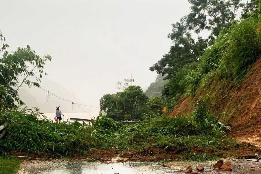 Theo đó, vào khoảng 15h30 cùng ngày, người dân đi đường phát hiện tảng đá cỡ lớn từ trên núi bị vỡ rồi lăn xuống đường.