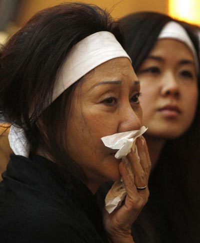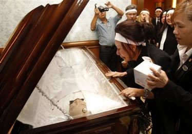 | Mọi người khóc trước linh cữu của ông Kỳ (Ảnh: AP) |