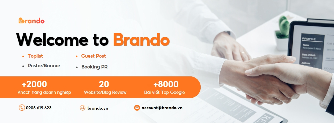 Công ty TNHH Truyền thông Brando chuyên tư vấn, triển khai hoạt động thương hiệu trên nền tảng chính là blog review dạng toplist nổi bật ở Việt Nam. Đến với Brando, các doanh nghiệp sẽ được tư vấn giải pháp xây dựng thương hiệu hiệu quả. Công ty còn cung cấp thêm các dịch vụ quảng bá thương hiệu khác như: bài PR báo chí, guest post... đáp ứng đa dạng nhu cầu. Công ty có đội ngũ nhân viên content nhiều kinh nghiệm trong dạng bài viết PR, quảng bá thương hiệu, hỗ trợ khách hàng tích cực trong mọi dịch vụ.