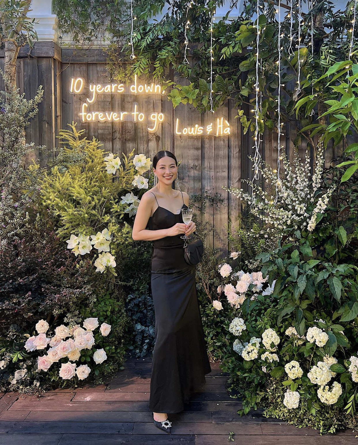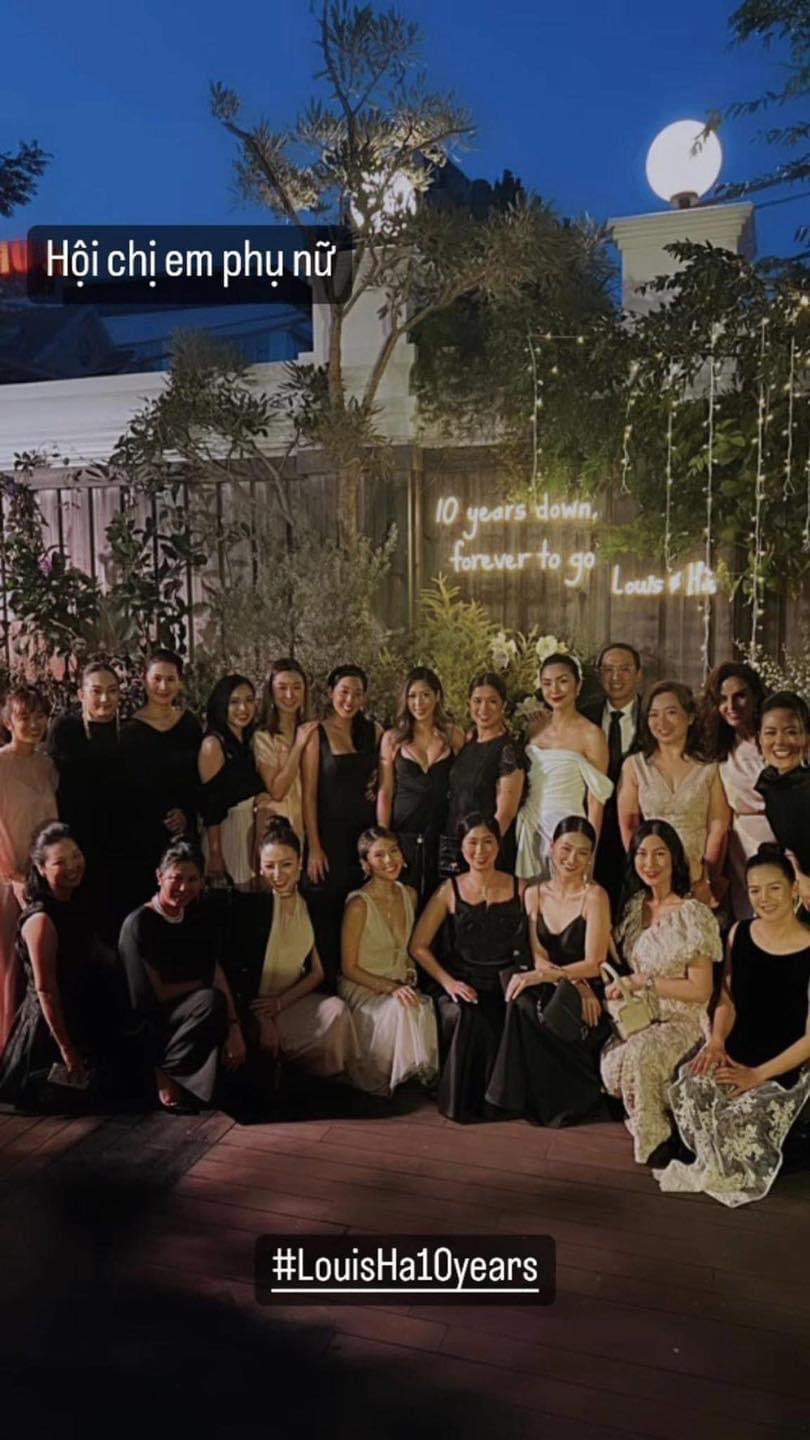 Tối 5/11, Tăng Thanh Hà và doanh nhân Louis Nguyễn tổ chức buổi tiệc thân mật kỷ niệm 10 năm ngày cưới. "Ngọc nữ" diện váy trắng thanh lịch của nhà thiết kế Lê Thanh Hoà. Trong khi đó, ông xã Louis Nguyễn lịch lãm cùng trang phục vest tối màu.Buổi tiệc tổ chức ở không gian ngoài trời với nhiều cây xanh, hoa tươi và nến, tông màu chủ đạo là xanh và trắng. Lối cổng vào là bức vẽ chân dung các thành viên trong gia đình Tăng Thanh Hà, Louis Nguyễn và các con. Trang phục của Tăng Thanh Hà được thiết kế đơn giản nhưng tôn lên vóc dáng nuột nà, vai trần gợi cảm và vẻ sang trọng, đằm thắm.Bữa tiệc tổ chức trong không gian được trang trí ngập hoa tươi, bàn tiệc sắp xếp tinh tế đế từng chi tiết. Khách mời ngồi theo vị trí do vợ chồng Hà Tăng viết tên sẵn.Khách dự tiệc diện trang phục đen, trắng hoặc tông màu trung tính. Trước khi bắt đầu buổi tiệc, nữ diễn viên và chồng có bài chia sẻ về quãng thời gian 10 năm về chung một nhà.Dàn mỹ nhân Việt góp mặt tại buổi tiệc có: Hoa hậu Trái Đất - Phương Khánh, Kathy Uyên, Thân Thuý Hà, Băng Di,... Ngoài ra, doanh nhân Phillip Nguyễn cũng xuất hiện trong buổi tiệc thân mật này.Hoa hậu Phương Khánh quyến rũ với chiếc đầm hai dây đen, đến chúc mừng người chị thân thiết. Băng Di là một trong số các khách mời đặc biệt tại bữa tiệc kỷ niệm 10 năm ngày cưới của Tăng Thanh Hà và Louis Nguyễn.Tăng Thanh Hà kết hôn với Louis Nguyễn năm 2012 với sự góp mặt của đông đảo các nghệ sĩ khách mời cùng bạn bè người thân của cả hai. Đám cưới của Tăng Thanh Hà và chồng được đánh giá là một trong những tiệc cưới xa hoa nhất thời bấy giờ. Dù đã rời showbiz, tập trung cho kinh doanh và công việc gia đình, Tăng Thanh Hà vẫn là mỹ nhân được truyền thông và khán giả quan tâm. Nhan sắc của cô ngày càng mặn mà, xinh đẹp, viên mãn khi làm mẹ 3 con.