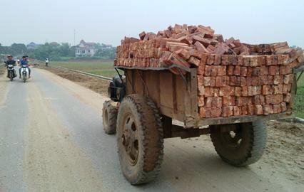 Dọc những con đường đất vào các thôn xóm của Minh Phú, chúng tôi gặp nhiều xe công nông phành phạch nổ máy. Đó là những phương tiện chuyên chở phổ biến ở Sóc Sơn, nhất là khi địa phương này có rất nhiều lò gạch.