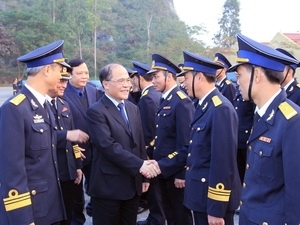 | Chủ tịch Quốc hội Nguyễn Sinh Hùng đến thăm Đoàn 679, Quân chủng Hải quân. Ảnh: TTXVN |