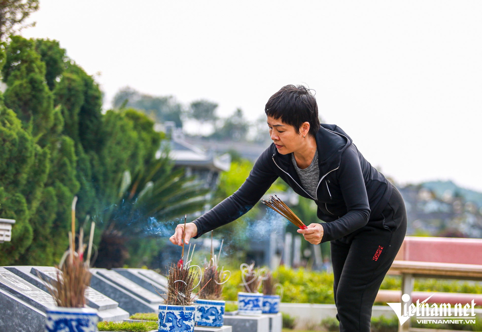 Cách phần mộ của gia đình ông Dương Đức Minh không xa, rất nhiều người cũng tranh thủ ngày cuối tuần tới nghĩa trang của gia đình sửa biện, thắp hương hoa, mời gia tiên về đón Tết.