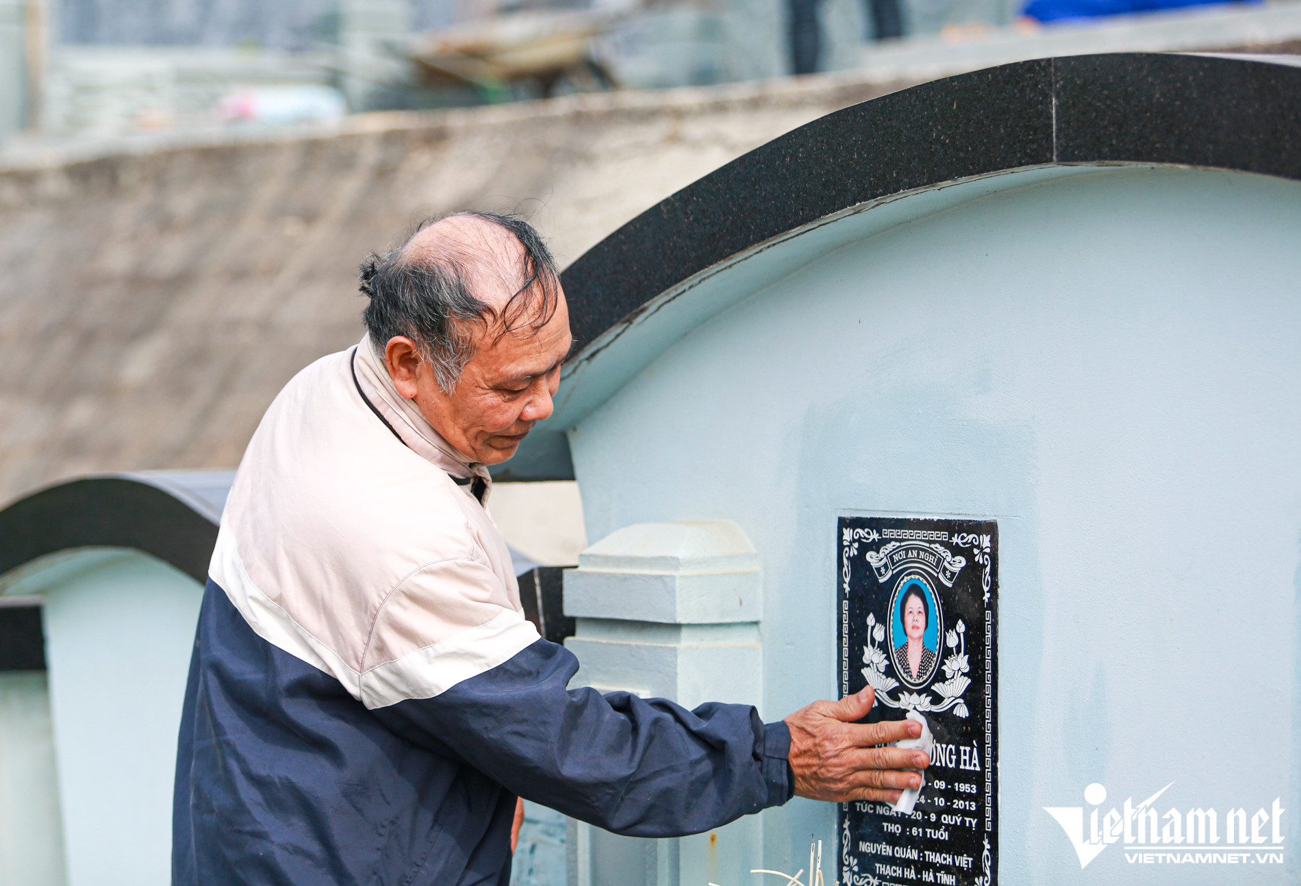 Ngay cạnh đó, cũng lau phần mộ của vợ, ông Hồ Đình Tâm (69 tuổi, ở Ba Đình, Hà Nội) chia sẻ, mỗi năm ông lên thăm mộ 3 lần vào các dịp Thanh minh, Rằm tháng Bảy và dịp cận Tết. Những dịp này thường là cả gia đình cùng tụ họp.