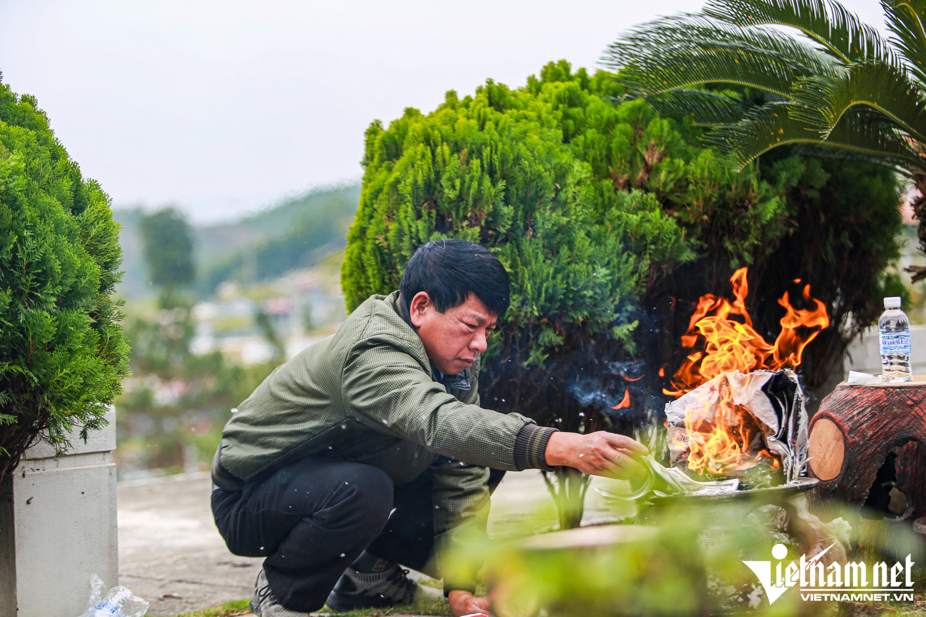 "Sáng sớm gia đình tôi đã lên thắp hương tại chùa Kim Sơn Lạc Hồng và bây giờ xuống phần mộ để thắp hương, mời tổ tiên và bà ấy về ăn Tết cùng gia đình", ông Tâm chia sẻ.