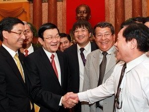 | Chủ tịch nước Trương Tấn Sang gặp gỡ đại diện các doanh nhân tiêu biểu trong cả nước. Ảnh: TTXVN |