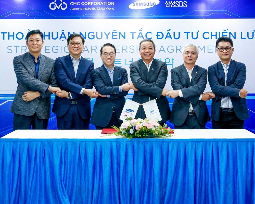 Samsung SDS là công ty thành viên của Tập đoàn Samsung (Hàn Quốc) chuyên về giải pháp IT và logistics, hiện là công ty công nghệ thông tin số 1 của Hàn Quốc. Nằm trong chiến lược mở rộng kinh doanh tại thị trường Việt Nam, ngày 25/5/2019 tại Hà Nội, Samsung SDS đã ký thỏa thuận nguyên tắc về việc đầu tư chiến lược với Tập đoàn Công nghệ CMC để tăng cường hợp tác toàn diện trong tất cả các lĩnh vực thế mạnh của hai bên. Trước mắt, Samsung SDS sẽ cùng CMC phát triển các lĩnh vực: giải pháp nhà máy thông minh (Smart Factory), điện toán đám mây (Cloud) và an ninh mạng (Cyber Security), trong tương lai sẽ khai thác các lĩnh vực khác như chuỗi khối (Blockchain) và phân tích dữ liệu lớn (Big Data), thúc đẩy tăng trưởng mạnh mẽ để mở rộng phạm vi sang thị trường Châu Á – Thái Bình Dương và phát triển kinh doanh toàn cầu.