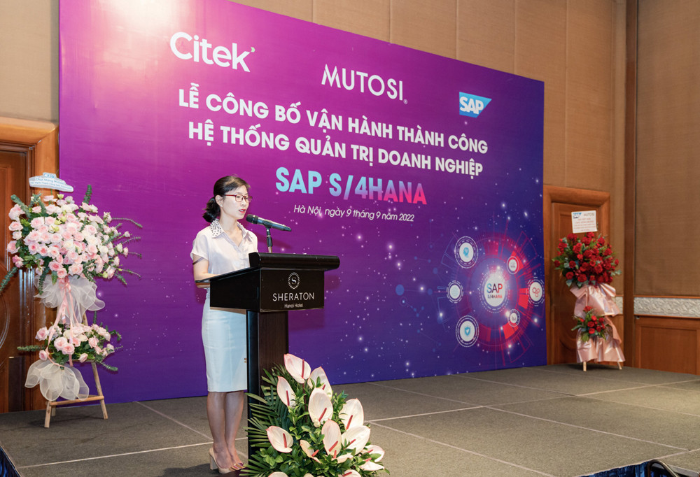Tại lễ công bố, bà Nguyễn Thị Thu Hoa, Giám đốc Tài chính công ty cổ phần Tập đoàn Mutosi cho biết: “Sự kiện ghi dấu mốc quan trọng, là tiền đề cho sự phát triển mạnh mẽ của Mutosi nhờ việc ứng dụng công nghệ số vào quản trị và vận hành. Đồng hành cùng đối tác Citek trong dự án này, tôi đánh giá rất cao tính cam kết, sự tận tâm, tính chuyên nghiệp và chuyên môn cao của Citek đã cùng Mutosi để đưa ra những giải pháp hoàn thiện trong 8 tháng qua”.
