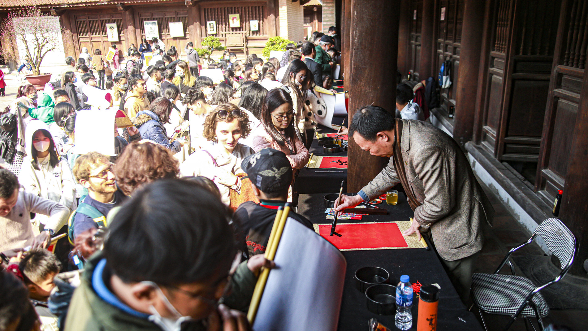 Xếp hàng dài xin chữ tại Văn Miếu - Quốc Tử GiámVăn Miếu - Quốc Tử Giám là địa điểm mỗi dịp Tết đến, Xuân về, người dân lại tới xin chữ đầu năm. Đó là nét văn hoá truyền thống tốt đẹp của người Việt, bắt nguồn từ sự hiếu học, trọng chữ và trọng tri thức.