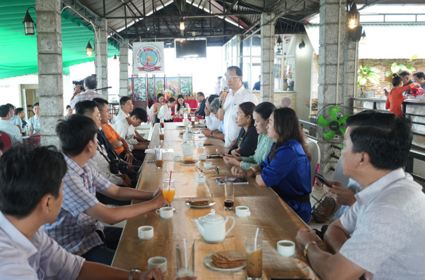 Tại buổi cà phê, Phó Chủ tịch Thường trực UBND tỉnh Bến Tre Nguyễn Trúc Sơn thông tin với cộng đồng doanh nghiệp về tình hình kinh tế - xã hội của tỉnh 6 tháng đầu năm 2023; công tác giải ngân vốn đầu tư công, tiến độ các công trình, dự án trọng điểm (cầu Rạch Miễu 2, Khu công nghiệp Phú Thuận, Bệnh viện Đa khoa tỉnh Bến Tre có vốn từ ODA Hàn Quốc…); các vấn đề liên quan đến xử lý rác thải; việc tháo gỡ khó khăn, vướng mắc cho doanh nghiệp…
