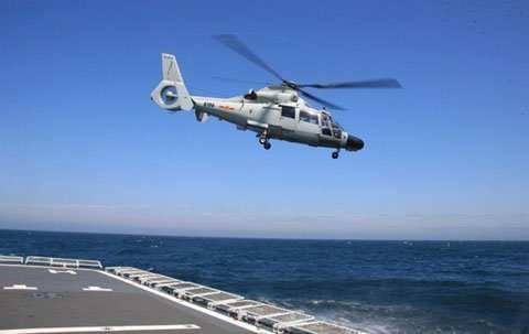| Trực thăng chuẩn bị cất cánh từ tàu khu trục Trung Quốc DDG-112 Harbin |