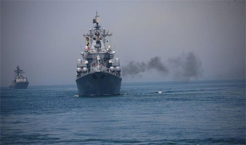 | Tàu khu trục Trung Quốc bắn đạn thật trong cuộc diễn tập chung với hải quân Nga |