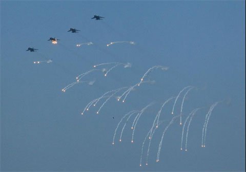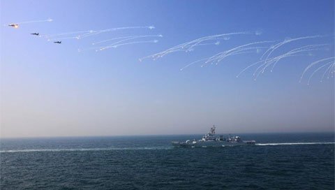 khí, tàu chiến Trung Quốc và Nga hôm qua đã tập trận bắn đạn thật.