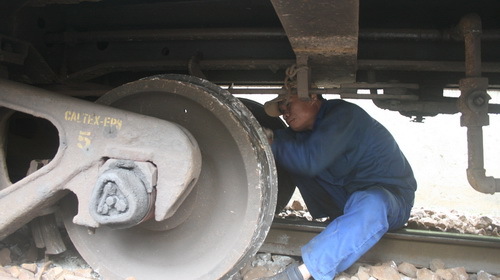 | Công nhân đường sắt đang khắc phục sự cố trật bánh |
