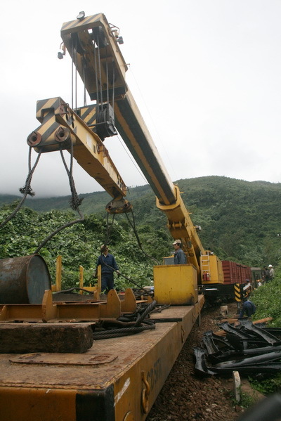 Trước đó, lúc 2g sáng, lực lượng cứu hộ cũng đã đưa một cần cẩu cứu hộ đường sắt