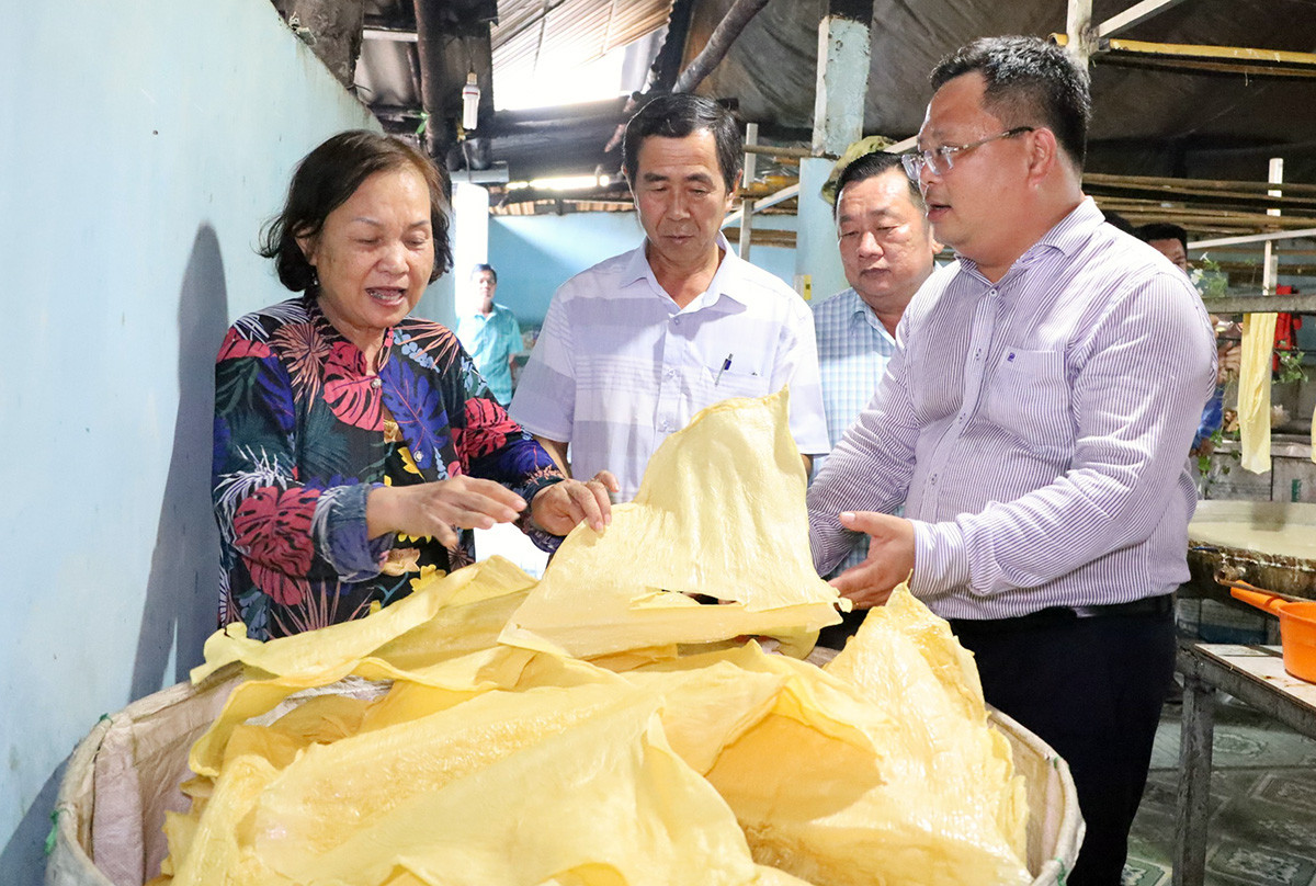 Bí thư thị xã Bình Minh Trương Đặng Vĩnh Phúc thăm làng nghề tàu hũ ky Mỹ Hòa.