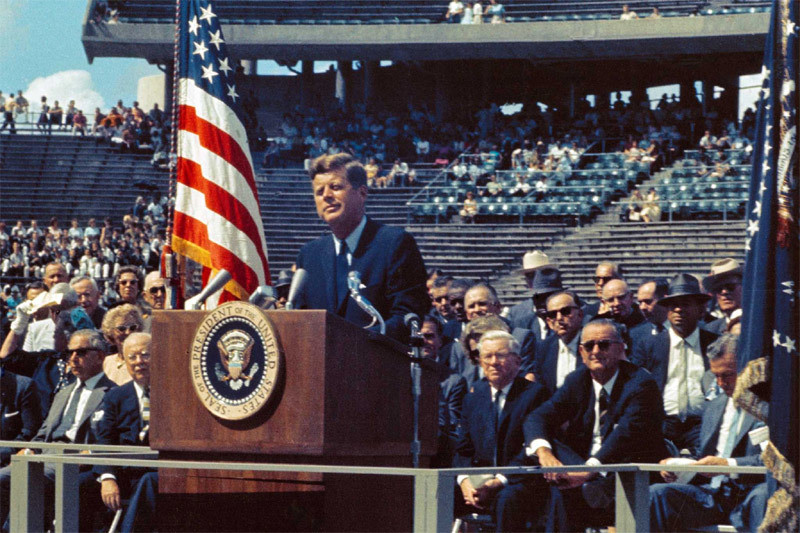 Ngày 12/9/1962, tại sân vận động Đại học Rice ở Houston, Texas, Tổng thống Mỹ John F.Kennedy có bài phát biểu nổi tiếng, thường được biết đến với tên gọi đơn giản "Chúng ta lựa chọn tới Mặt trăng".