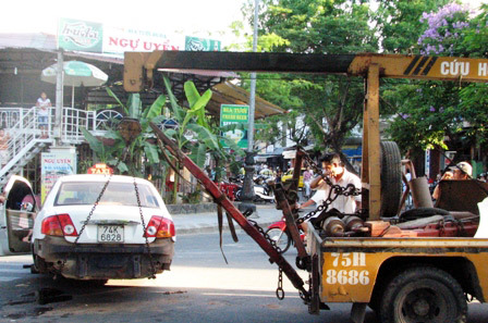 Sau khi vụ việc xảy ra, lực lượng CA TP Huế đã huy động xe cứu nạn đến hiện trường giải tỏa xe taxi, tránh gây ùn tắc. |