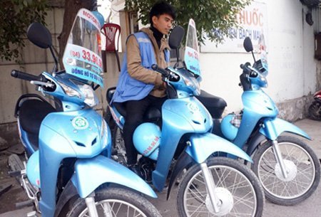 Tại Hà Nội vừa xuất hiện hàng loạt xe ôm hoạt động như taxi chuyên nghiệp. Xe máy của họ được trang bị đồng hồ tính cước, số điện thoại, bảng niêm yết giá cụ thể.