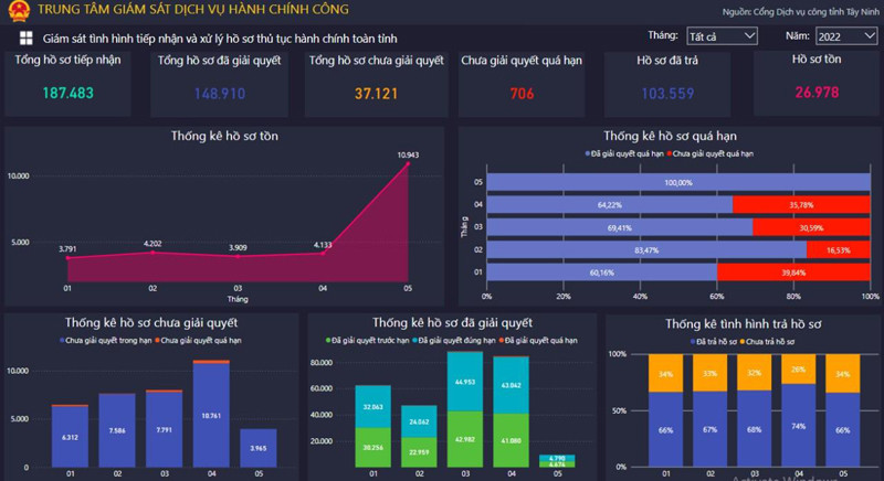Ngày 9/5, UBND tỉnh Tây Ninh công bố kết quả tiếp nhận và giải quyết thủ tục hành chính của các sở, ban, ngành và UBND cấp huyện trên địa bàn tỉnh Tây Ninh trong tháng 4/2022. Theo số liệu được trích xuất từ Hệ thống một cửa điện tử của tỉnh, bộ phận Một cửa của các sở, ban, ngành của tỉnh và UBND cấp huyện đã tiếp nhận tổng cộng 44.307 hồ sơ, trong đó có 36.174 hồ sơ (đạt tỷ lệ 81,65%) đã giải quyết đúng hạn.