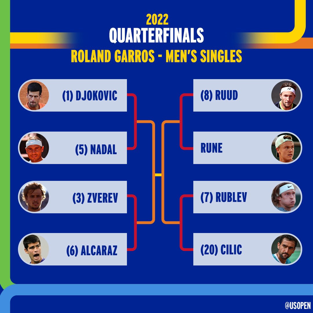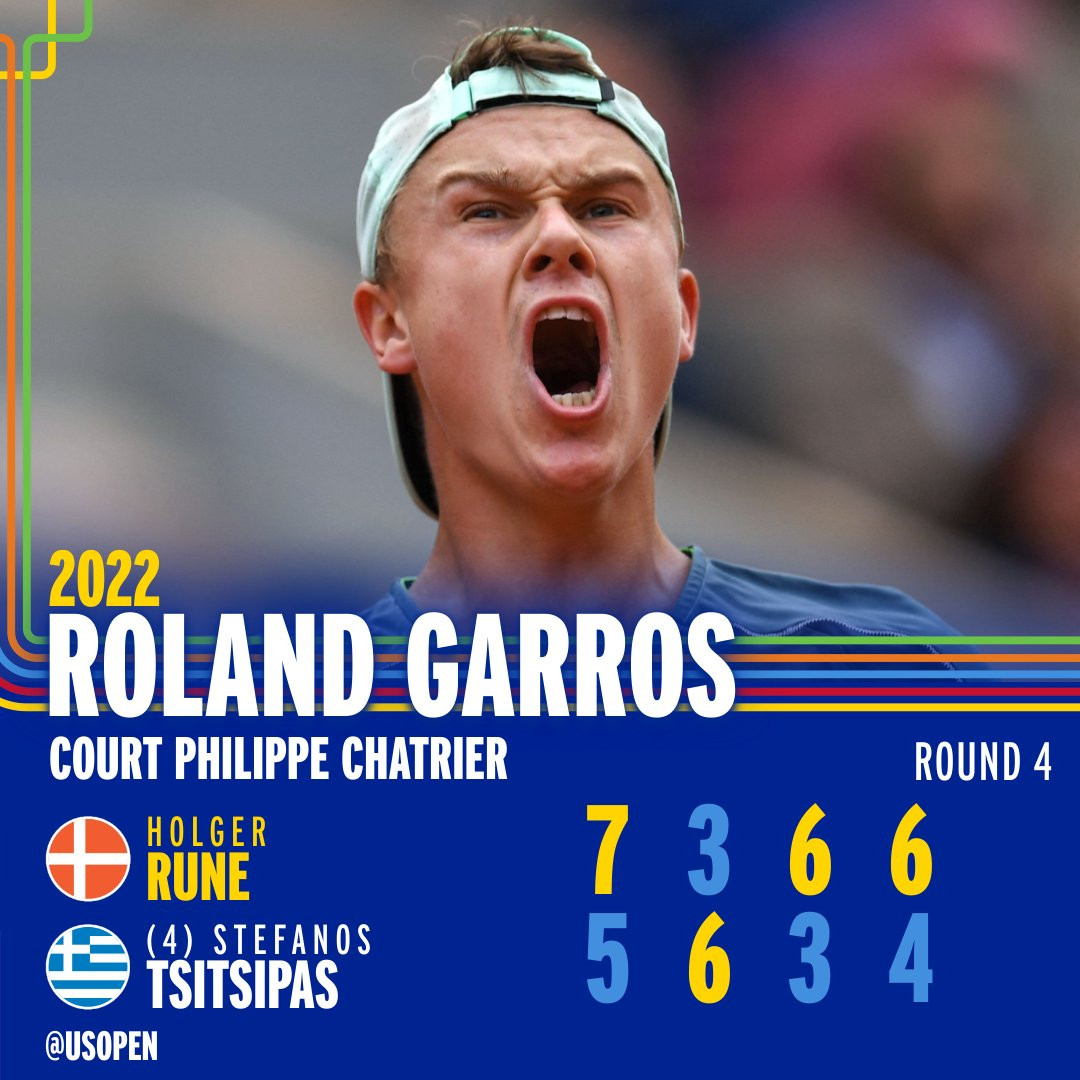Holger Rune, hạng 40 thế giới và anh không được xếp hạt giống tại Roland Garros 2022Tuy nhiên, tay vợt 19 tuổi người Đan Mạch đã tạo nên cơn địa chấn khi loại hạt giống số 4 Stefanos TsitsipasĐương kim á quân Pháp mở rộng thua 5-7 trong set mở màn. Nỗ lực giúp anh thắng lại 6-3 trong set 2Tay nhiên, Holger Rune đã không cho người đàn anh có cơ hội ngược dòngHolger Rune giành chiến thắng 6-3 và 6-4 ở 2 set sau đó để ghi tên mình vào tứ kết Pháp mở rộng năm nayHolger Rune đã đi vào lịch sử trở thành người Đan Mạch đầu tiên lọt vào vòng tứ kết đơn nam ở một giải Grand Slam trong kỷ nguyên mở Niềm vui vỡ òa của Holger Rune4 cặp đấu tứ kết Roland Garros năm nay. Holger Rune sẽ đối đầu Casper Ruud