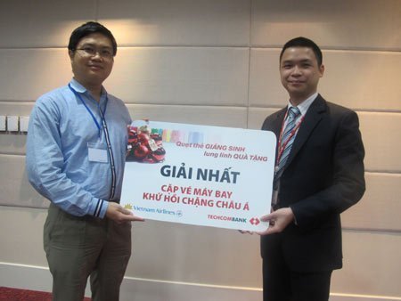 Áp dụng với chủ thẻ Vietnam Airlines Techcombank Visa, Chương trình đã trao giải Nhất - 02 cặp vé máy bay khứ hồi khu vực Châu Á cho khách hàng Nguyễn Mạnh Tú và Lê Hoàng Hải và 03 cặp vé khứ hồi trong lãnh thổ Việt Nam do Vietnam Airlines khai thác cho 03 khách hàng đoạt giải Nhì.