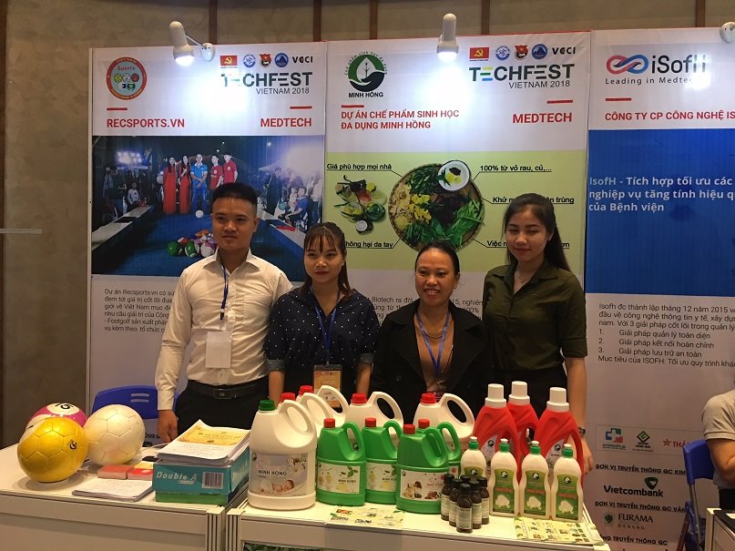 Các doanh nghiệp khởi nghiệp tham gia triển lãm trong khuôn khổ Techfest 2018 |