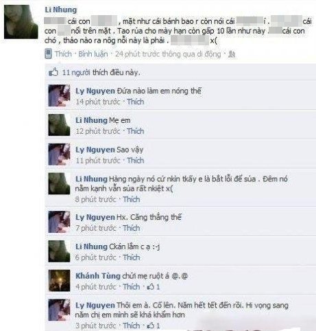 Có thể là do đang nóng giận vì bị mẹ mắng nên bạn ấy mới "xả giận" trên Facebook như vậy. Nhưng mang mẹ của mình lên FB để chửi rủa thì không hiểu teengirl này có nghĩ đến sự phản ứng của những người xung quanh? Họ sẽ ủng hộ và cười xòa với cô nàng hay sẽ nghĩ cô nàng này là một người rất tồi tệ, có vấn đề về nhân cách???