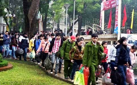 Cuối tuần vừa qua, các trường ĐH, CĐ bắt đầu cho sinh viên nghỉ Tết. Tại các điểm xe buýt, ga tàu và bến xe lượng sinh viên đang ùn ùn kéo về đây.